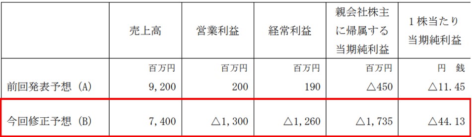 減収に加えて、黒字予想が大幅赤字になってしまいました。