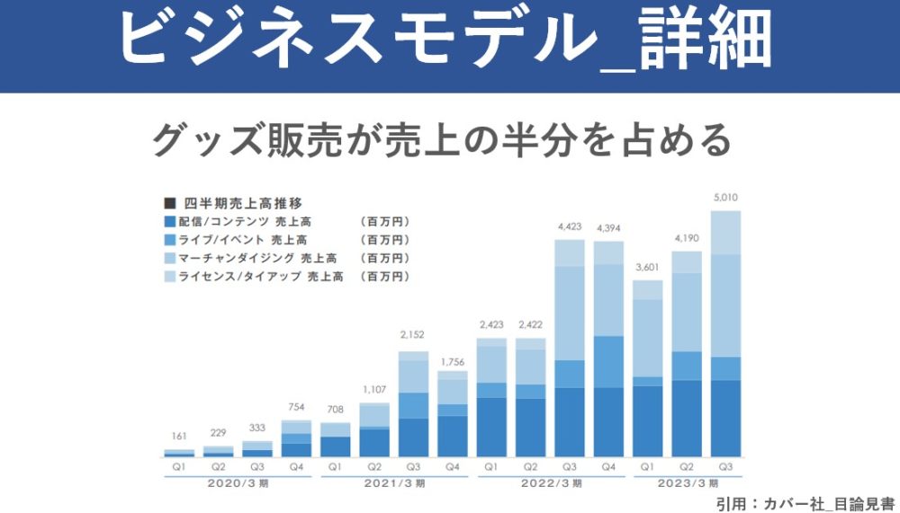 ビジネスモデルは同じで、売上構成比もグッズ販売が半分を占めていました。