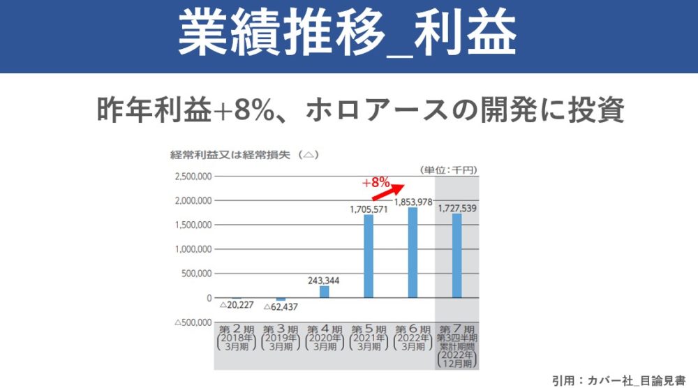 ただし上記で説明した通り、カバーはホロアースの開発に先行投資をしているので利益が小さくなっています。