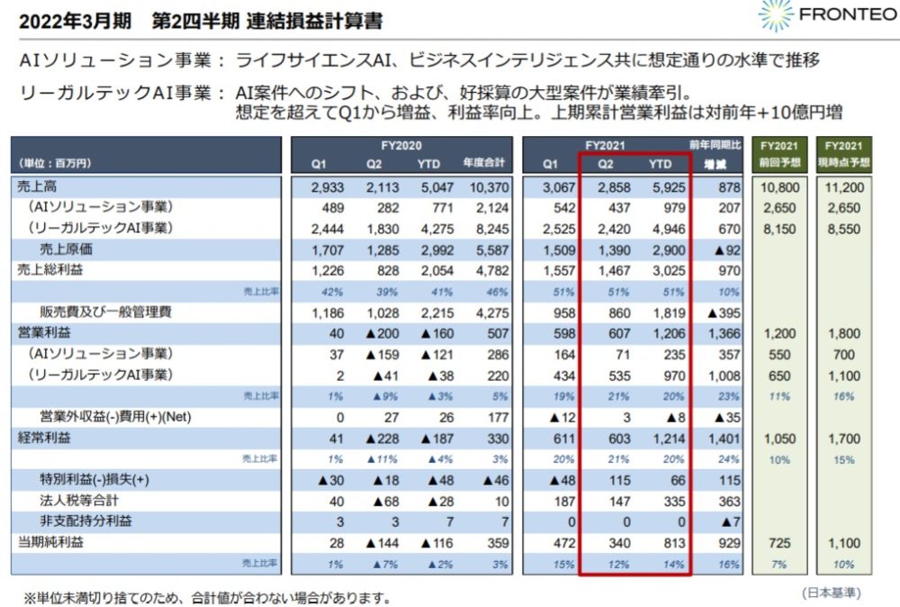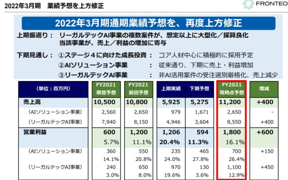 更なる成長のため、下期にコア人材の積極採用をするので人件費が膨らむのと、収益基盤であるリーガルテックAI事業については利益率の高いAI活用案件に注力する方針から、売上減少を見込んでいます