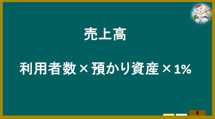 サービス利用者から預かり資産の年1%にあたる手数料を受け取るモデルとなっています。