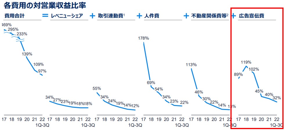そのためSaaS企業同様にトップラインを伸ばすために、広告費へ積極投資しています。