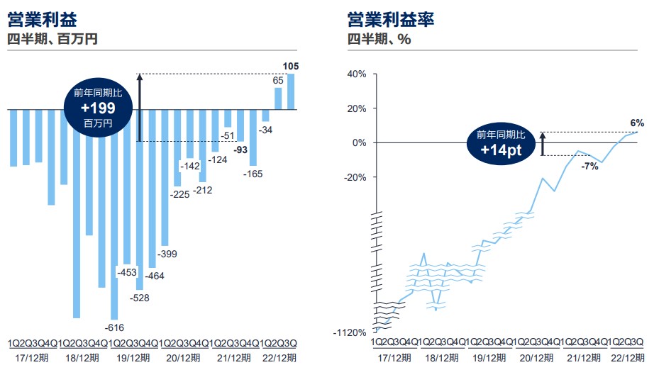 黒字化に伴い、営業利益率も6%に改善しています。
