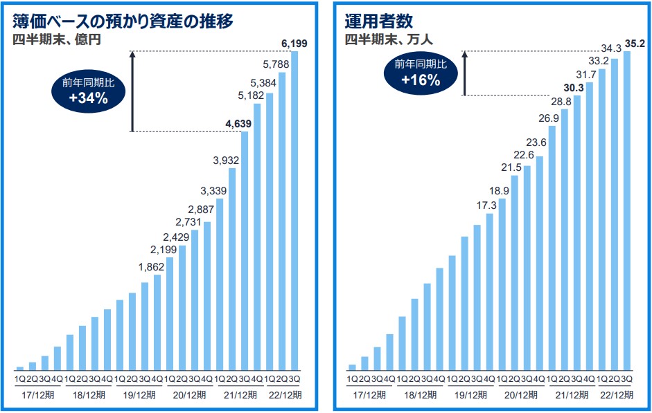 四半期推移でも鈍化するどころか、預かり資産を加速させています。