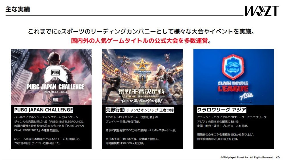 元々ウェルプレイドとライゼストはeスポーツ関連の別会社でしたが、2021年にライゼストを合併して現会社になりました。