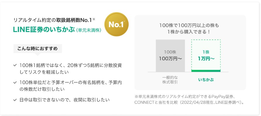 [su_panel background=”#efffec” border=”2px solid #9ffa9c” shadow=”0px 0px 0px #eeeeee”][su_icon icon=”icon: hand-o-right” background=”#ffffff” color=”#99fa6d”]LINE証券[/su_icon]- 1株単位で数百円から株が買える